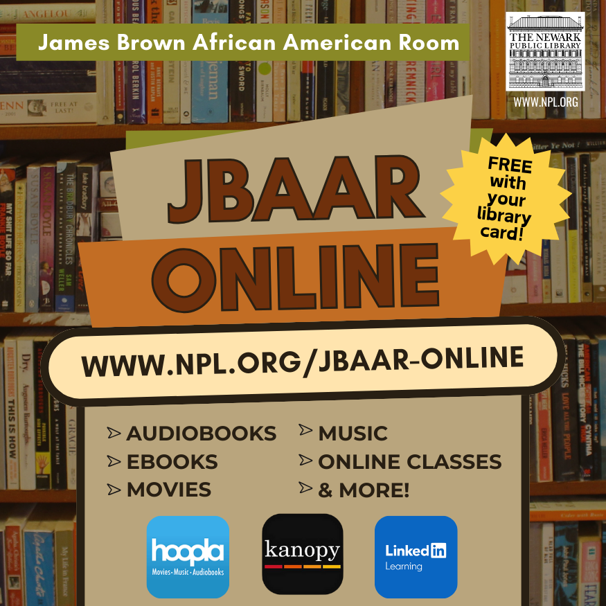 JBAAR ONLINE is our new hub for connecting you to NPL’s digital resources! Audiobooks, eBooks, movies, music, online classes, and more all FREE with your Newark Public Library card!