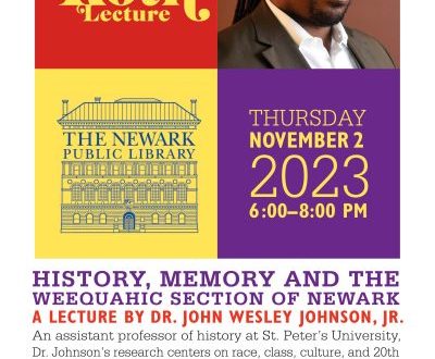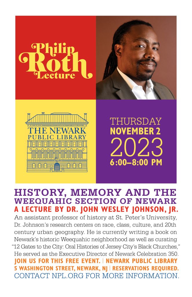 The Newark Public Library cordially invites you to join us for The 2023 Philip Roth Lecture: History, Memory, and the Weequahic Section of Newark by Dr. John Wesley Johnson, Jr.