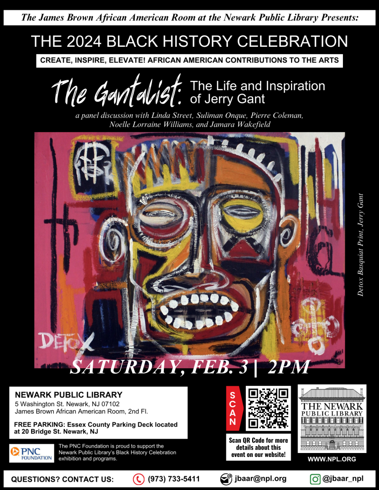 Join us for an engaging panel discussion as Newark artists delve into the life and inspiration of the renowned Jerry Gant. Linda Street, Noelle Lorraine Williams, Suliman Onque, and Pierre Coleman, who will also be screening “The Gantalist,” will share their insights into Jerry Gant’s impactful work. The conversation will extend beyond Gant’s art to explore the support and challenges faced by Newark artists. Jamara Wakefield will guide this enlightening discussion as the moderator.