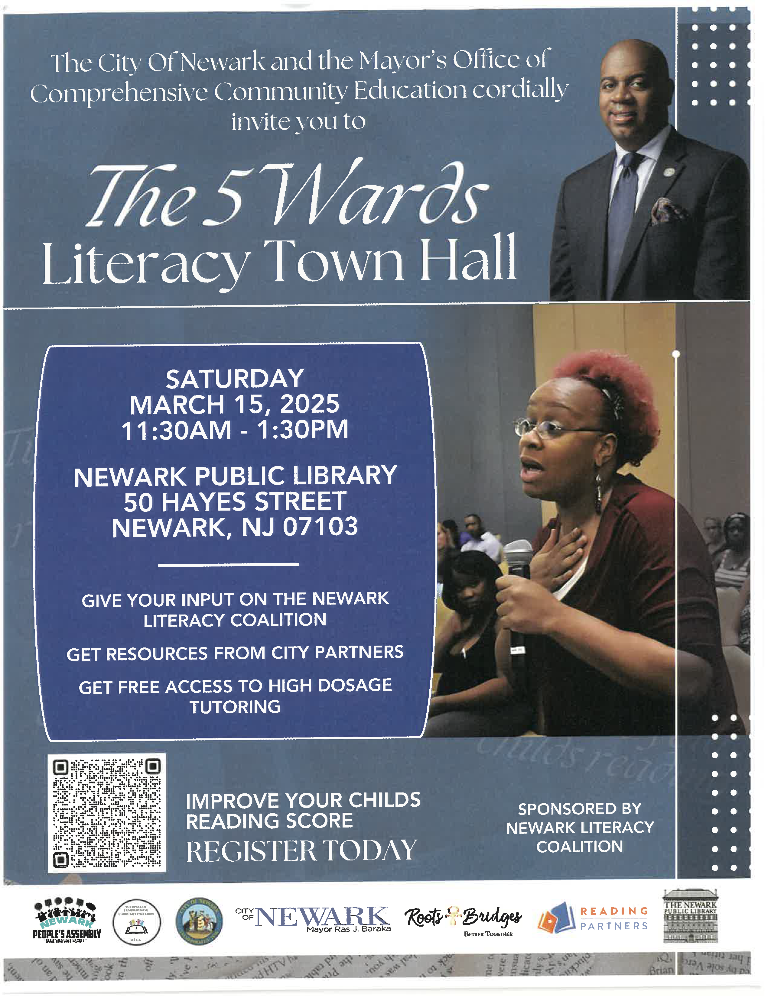 Empowering Newark Through Literacy! 🏫📚 The City of Newark and the Mayor’s Office invite you to the 5 Wards Literacy Town Hall. Register today and help improve literacy in our community!