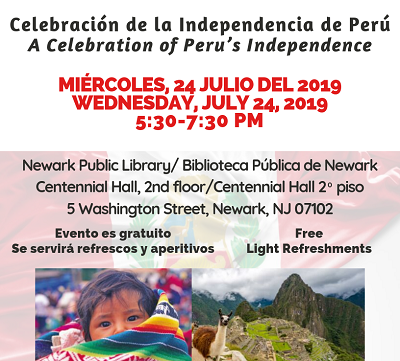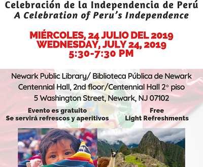 Join us for a celebration of Peru’s Independence! This is a free event. We will be serving light refreshments.
