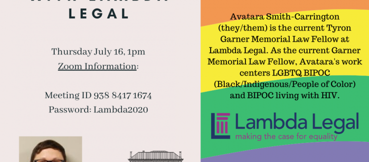 Avatara Smith-Carrington (they/them) is the current Tyron Garner Memorial Law Fellow at Lambda Legal. As the current Garner Memorial Law Fellow, Avatara’s work centers LGBTQ BIPOC (Black/Indigenous/People of Color) and BIPOC living with HIV.