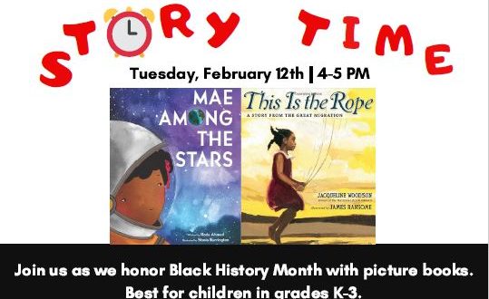 Please join us for some stories highlighting Women’s History Month. Best for children in kindergarten to third grade.