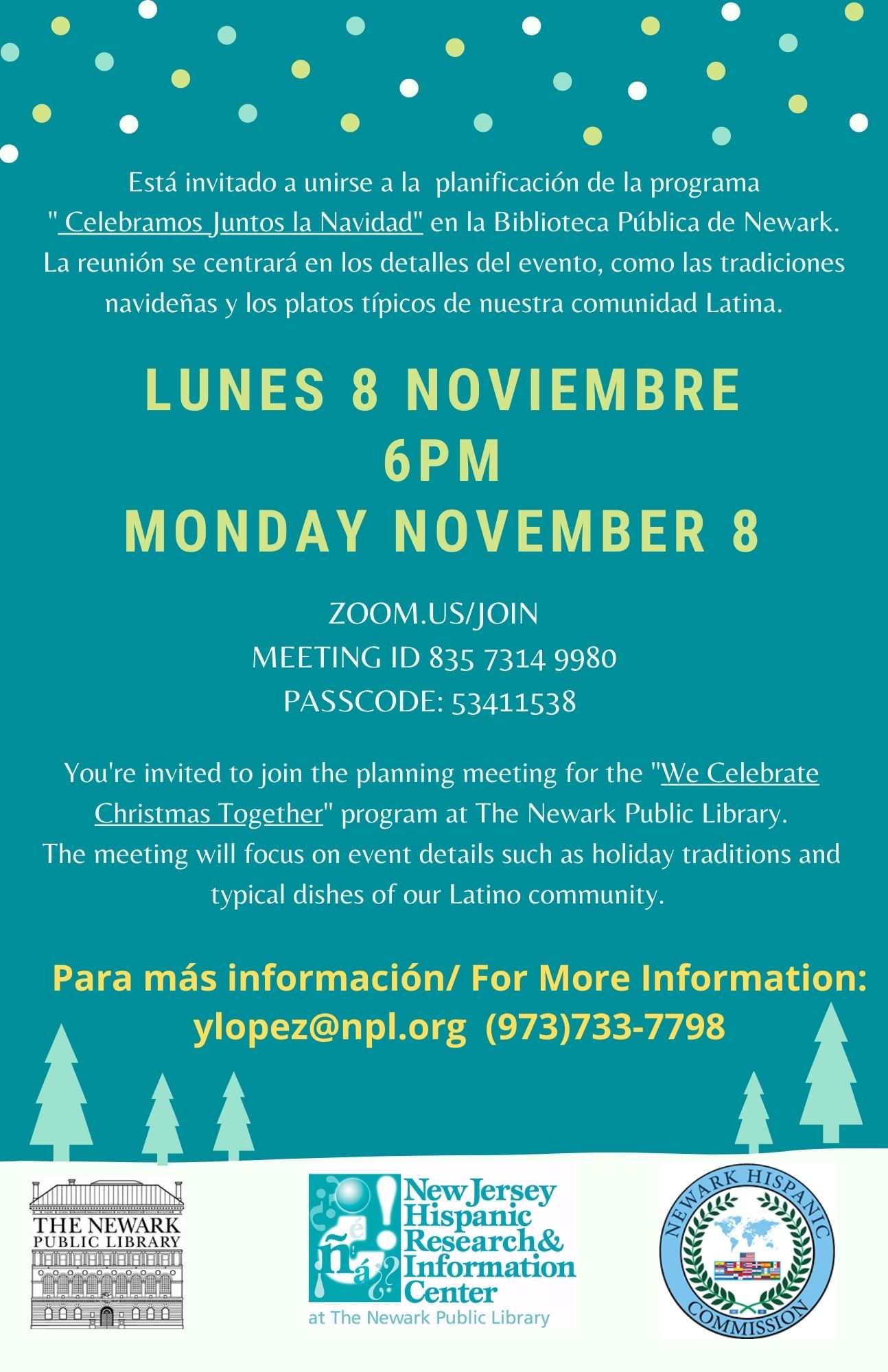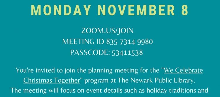 You’re invited to join the planning meeting for the “We Celebrate Christmas Together” program at The Newark Public Library. The meeting will focus on event details such as holiday traditions and typical dishes of our Latino community.