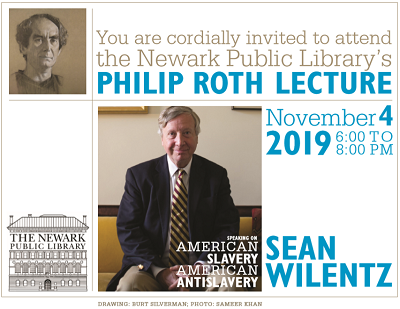 You are cordially invited to attend the Newark Public Library’s Philip Roth Lecture on Monday, November 4th, with guest lecturer, Sean Wilentz speaking on American Slavery, American Antislavery.