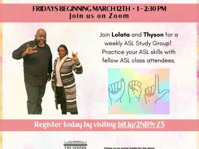Fridays beginning March 12th • 1 – 2:30 PM Join us on Zoom Join Lolata and Thyson for a weekly ASL Study Group! Practice your... Read More