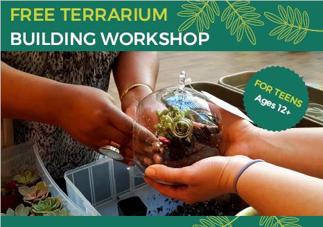 Come to a hands-on workshop and learn how to create a tiny environment for plants to grow, by layering sand, earth, and rocks! Each terrarium can be personalized using moss, stones, and bespoke ornaments. All participants create a unique finished project to take home!
