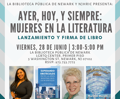 La Biblioteca Pública de Newark y NJHRIC presenta: Ayer, Hoy, Y Siempre: Mujeres En La Literatura. Lanzamiento y Firma De Libro