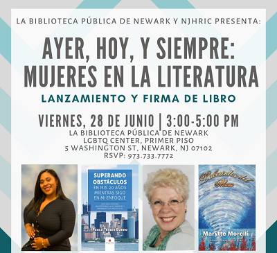 La Biblioteca Pública de Newark y NJHRIC presenta: Ayer, Hoy, Y Siempre: Mujeres En La Literatura. Lanzamiento y Firma De Libro