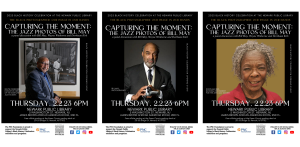The exhibit, Capturing the Moment: The Jazz Photos of Bill May, will be on view in the 2nd floor exhibit gallery.
