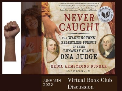 Virtual Book Club – Never Caught: The Washingtons’ Relentless Pursuit of their Runaway Slave, Ona Judge
