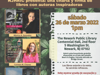 NJHRIC presenta: una charla y firma de libros con autoras inspiradoras Centennial Hall, 2nd floor sábado, 26 de marzo 2022, 1pm Parking: Habrá... Read More