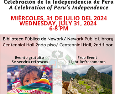 Celebración de la Independencia de Perú Miércoles, 31 de julio del 2024 6 – 8 PM La Biblioteca Pública de Newark Centennial Hall, 2ndo piso... Read More