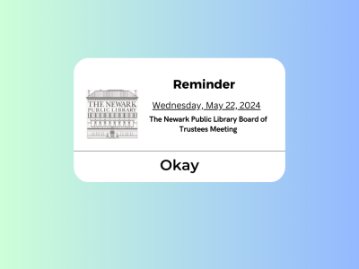 Dear Community Members, We are pleased to announce that the Newark Public Library Board of Trustees will be holding their next meeting on Wednesday, May... Read More