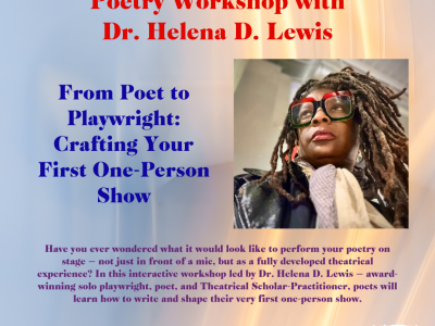 Please join us for a free creative writing workshop! From Poet to Playwright: Crafting Your First One-Person Show Presented by Dr. Helena D. Lewis Thursday... Read More