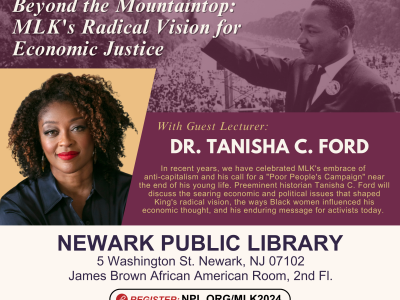 The 2024 Martin Luther King Jr. Commemorative Lecture Saturday, January 13th, 2024 | 2 PM Newark Public Library James Brown African American Room, 2nd Fl.... Read More