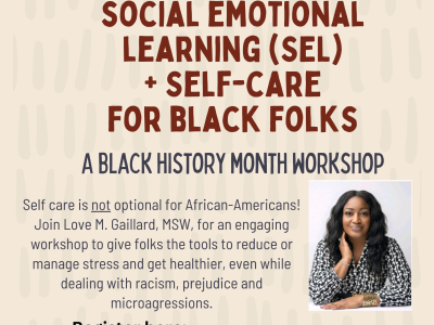 SEL + Self Care for Black Folks A workshop with Love M. Gaillard, MSW Wednesday, February 28, 2024 6 pm 4th Floor Auditorium Newark Public Library... Read More