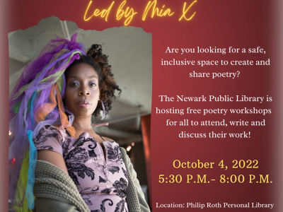 October 4, 2022, 5:30 P.M. – 8:00 P.M.. Main Library, Philip Roth Personal Library, Second floor. The Newark Public Library is hosting free poetry workshops... Read More