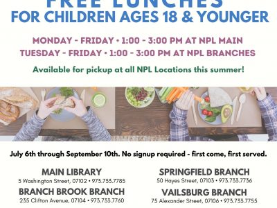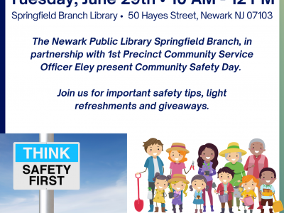 Tuesday, June 29th • 10 AM – 12 PM Springfield Branch Library • 50 Hayes Street, Newark NJ 07103 The Newark Public Library Springfield Branch,... Read More