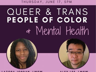Thursday, June 17th | 5:00 PM Tune in on Zoom or Facebook Live Join a community conversation on mental health and navigating mental health services... Read More