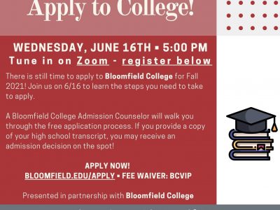 Wednesday, June 16th • 5:00 pm Tune in on Zoom – register below There is still time to apply to Bloomfield College for Fall 2021!... Read More