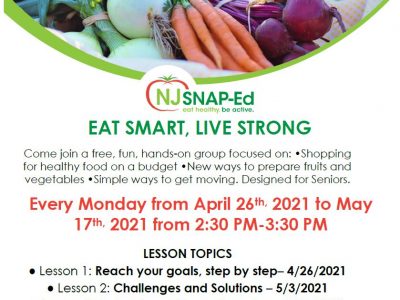 Mondays, April 26th through May 17th | 2:30-3:30 PM Tune in on Zoom – registration details below EAT SMART, LIVE STRONG Come join a free,... Read More