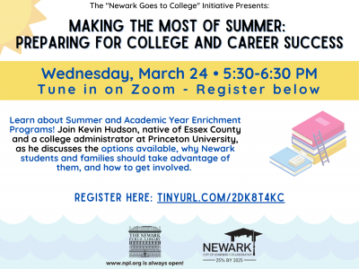 Wednesday, March 24th | 5:30 PM Tune in on Zoom – register below Newark Goes to College Presents: Making the Most of Summer: Preparing for... Read More