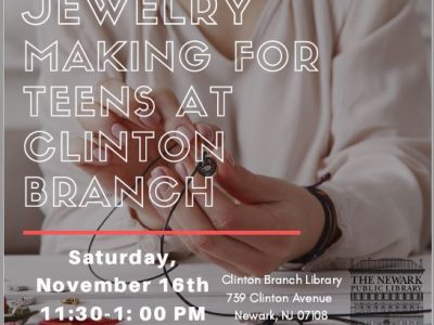 Saturday, November 26th, 2019 | 11:30-1 PM The Newark Public Library, Clinton Branch Library | 739 Bergen Street, Newark, NJ 07102 Jewelry Making Workshop for... Read More