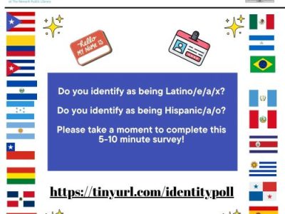 ¿Te identificas como latino/e/a/x? ¿Se identifica usted como hispanic/a/o? ¡Tómase un momento para completar esta encuesta de 5 a 10 minutos! Encuesta: https://tinyurl.com/identitypoll