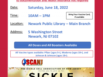 FREE COVID-19 VACCINES AND BOOSTERS! Saturday, June 18, 2022 Time 10-1pm Location: Newark Public Library – Main Branch Centennial Hall