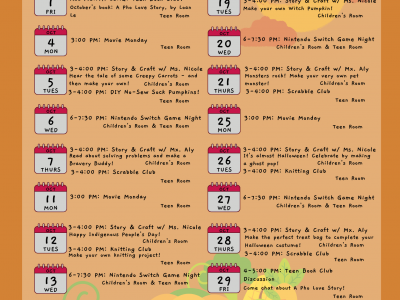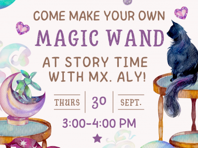 Thursday, September 30th | 3:00-4:00pm NPL Main Children’s Room Come make your own magic wand at storytime with Mx. Aly! Click here to view the... Read More