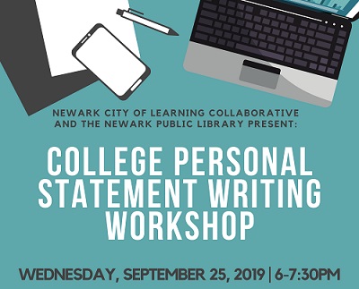 Join us at The Newark Public Library to learn how to prepare a quality personal statement for college admission. If you have a draft of a college personal statement, bring it to us for review.