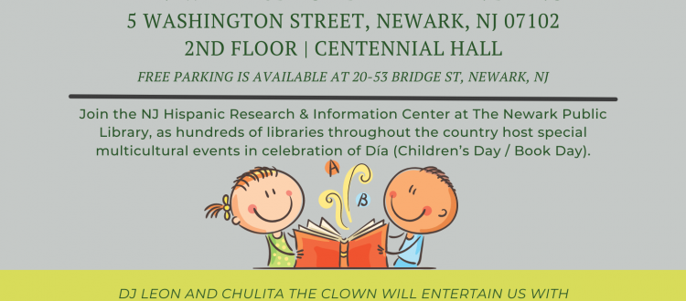 Join the NJ Hispanic Research & Information Center at The Newark Public Library, as hundreds of libraries throughout the country host special multicultural events in celebration of Día (Children’s Day/ Book Day).