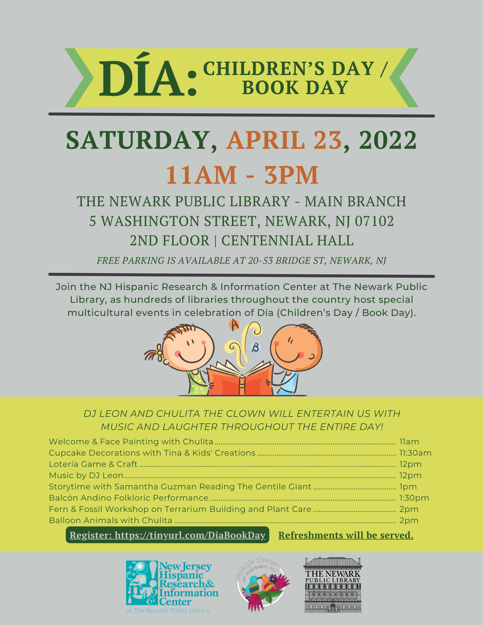 Join the NJ Hispanic Research & Information Center at The Newark Public Library, as hundreds of libraries throughout the country host special multicultural events in celebration of Día (Children’s Day/ Book Day).