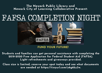 Students and families can get personal assistance with completing the 2019-2020 Free Application for Federal Student Aid (FAFSA). Join us for one of our three available dates!
