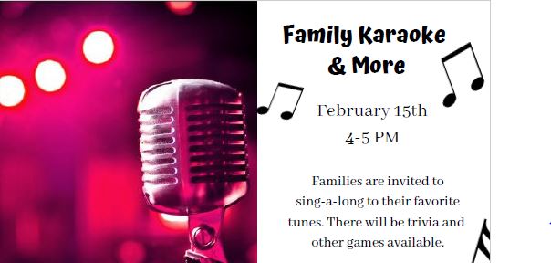Families are invited to sing-a-long to their favorite tunes. There will be trivia and other games available.