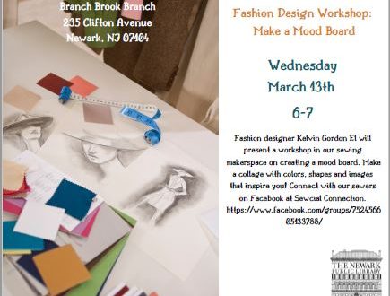 Fashion designer Kelvin Gordon El will present a workshop in our sewing makerspace on creating a mood board. Make a collage with colors, shapes and images that inspire you! Connect with our sewers on Facebook at Sewcial Connection. https://www.facebook.com/groups/752456605133788/
