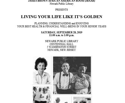 The Friends of the James Brown African American Room (JBAAR) Newark Public Library presents: Living Your Life Like It’s Golden! Planning, Understanding and Enjoying your Best Health & Financial Well-Being in your Senior Years