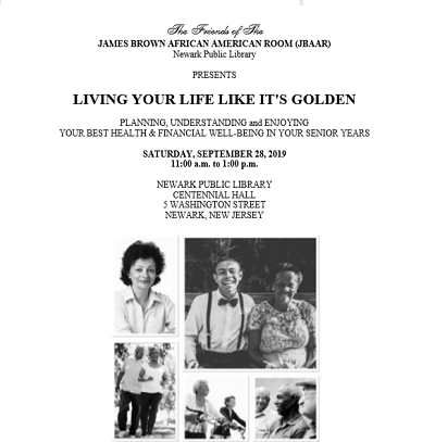 The Friends of the James Brown African American Room (JBAAR) Newark Public Library presents: Living Your Life Like It’s Golden! Planning, Understanding and Enjoying your Best Health & Financial Well-Being in your Senior Years