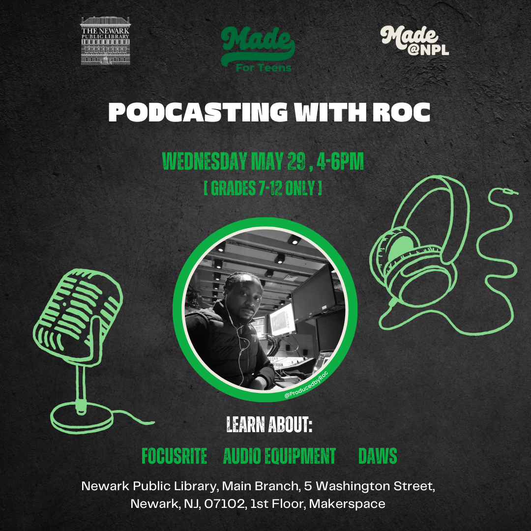 Learn the basics of Podcasting using the Made@NPL audio recording booth. This course will cover content creation, recording techniques, podcast promotion, and podcasting etiquette. Patrons will leave with the tools and understanding to be able to use the Made@NPL equipment to record and edit their podcast.