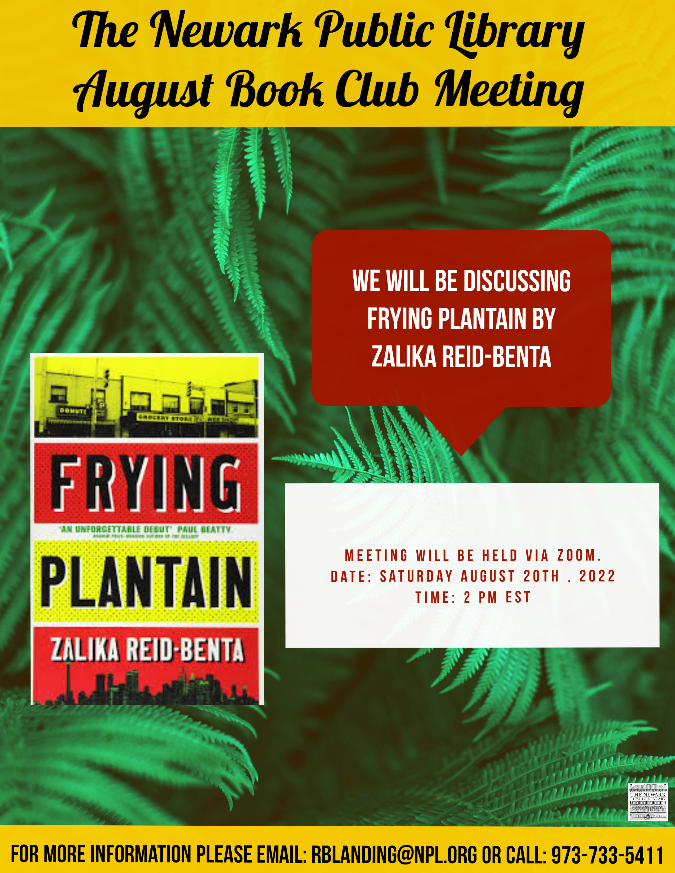 The Newark Public Library Book Club will discuss Frying Plantain by Zalika Reid-Benta.