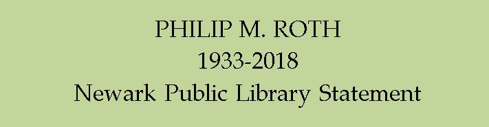 PHILIP M. ROTH 1933-2018 Newark Public Library mourns the loss of Philip Roth, acclaimed American author and lifelong friend and supporter of the Newark Public Library. Mr. Roth had a strong personal connection to the Newark Public Library. It played a significant role when he was growing up in the Weequahic community of Newark. He... Read More