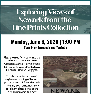 Monday, June 8th | 1:00 PM Tune in on Facebook or YouTube Please join us for a peek into the William J. Dane Fine Prints Collection at the Newark Public Library with Special Collections Librarian, Nadine Sergejeff. In this presentation, we will explore a sampling of historic prints of Newark from the 19th and early... Read More