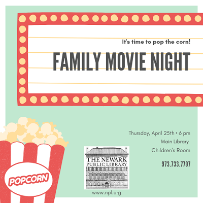 Thursday, April 25th, 2019 | 6:00 PM The Newark Public Library, Children’s Room | 5 Washington Street, Newark, NJ 07102 It’s time to pop the corn! Join us at The Newark Public Library in the first floor Children’s Room for family movie night! Click here to view the flyer. For more information, please contact us... Read More