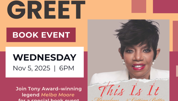 Wednesday, November 5th 2025, 6PM-7:30PM James Brown African American Room, 2nd Fl. Join Tony Award-winning and 3x Grammy-nominated singer and actress Melba Moore for a... Read More