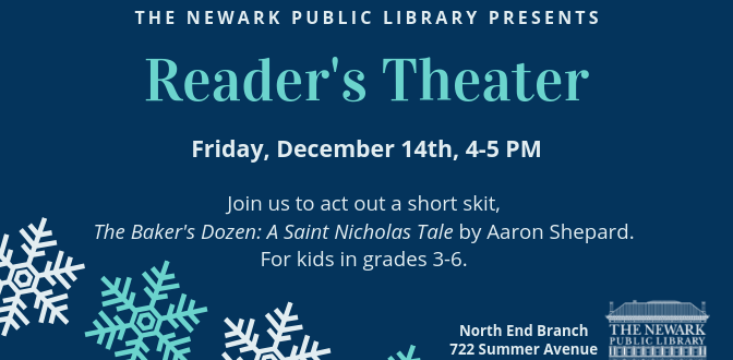 Join us at The Newark Public Library on Friday, December 14th from 4-5 PM where will act out a short skit of the book The Baker’s Dozen: A Saint Nicholas Tale by Aaron Shepard. For kids in grades 3-6.