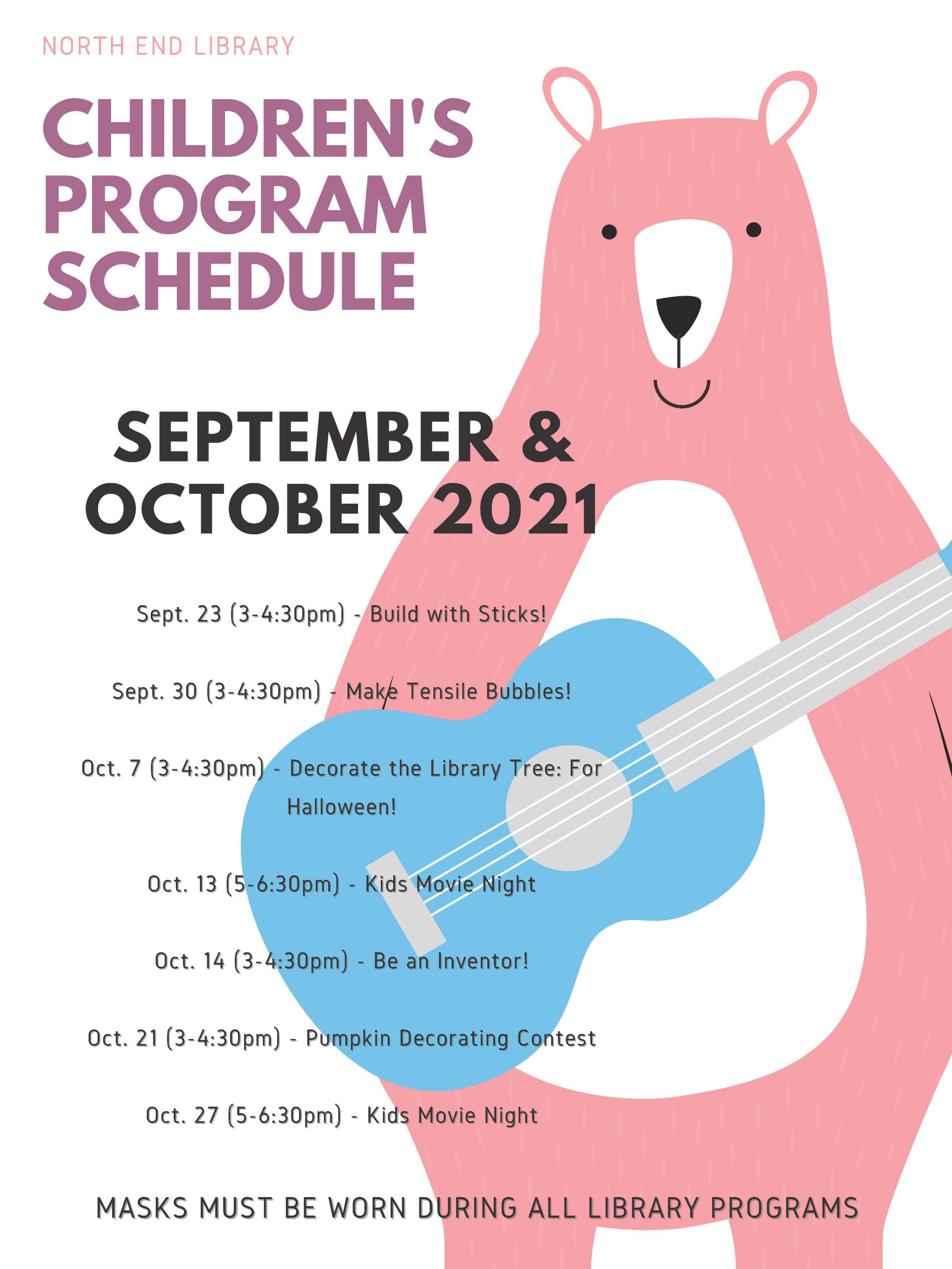 /Past Exhibits and Events October Children’s Programs @ North End Branch Click here to view the flyer. Children