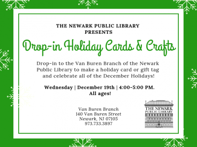 Wednesday, December 19th, 4:00-5:00 PM Newark Public Library, Van Buren Branch | 140 Van Buren Street, Newark, NJ 07105 Drop-in to the Van Buren Branch... Read More