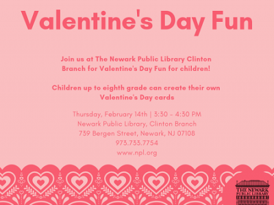 Thursday, February 14th, 3:30-4:30 PM Newark Public Library, Clinton Branch | 739 Bergen Street, Newark, NJ 07108 Children through eighth can join us to create... Read More