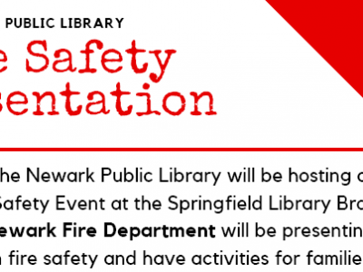/Past Exhibits and Events NEWARK FIRE DEPARTMENT: FIRE SAFETY PRESENTATION – Springfield Branch Thursday, February 7th, 3:30-5:00 PM Newark Public Library, Springfield Branch | 50 Hayes Street, Newark, NJ 07103 Join us at The Newark Public Library’s Springfield... Read More